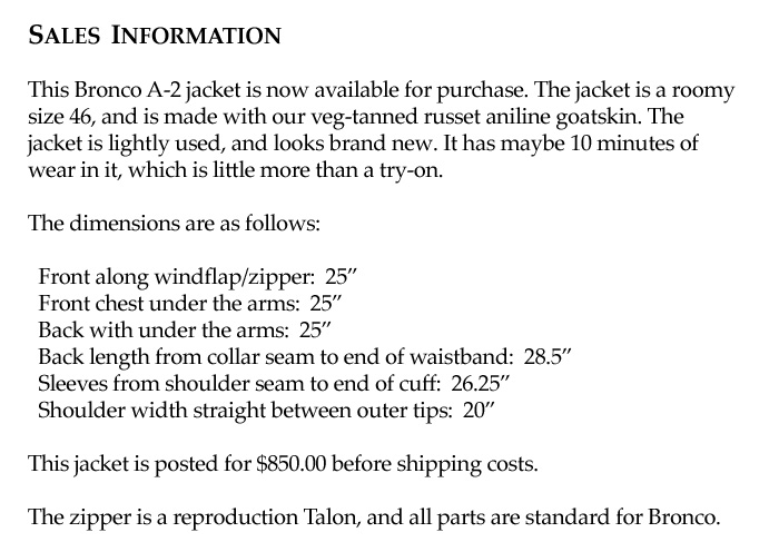 Parent Directory - A2_Bronco.jpg 2010-10-21 15:07 132K Sale_Info.jpg 2010-10-21 15:07 76K collar1.jpg 2010-10-21 15:07 165K collar2.jpg 2010-10-21 15:07 173K front_view1.jpg 2010-10-21 15:07 103K front_view2.jpg 2010-10-21 15:07 130K label.jpg 2010-10-21 15:07 333K pocket.jpg 2010-10-21 15:07 309K reverse_view1.jpg 2010-10-21 15:07 114K reverse_view2.jpg 2010-10-21 15:07 137K talon_zipper.jpg 2010-10-21 15:07 350K