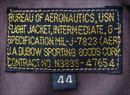 About This Jacket:This Lost Worlds G-1 is a copy of the 1950's J.A. Dubow contract G-1. It has dark soft goatskin and very dark mouton. As a size 44, it fits true to sizing of the period. Collection: Don Klinz