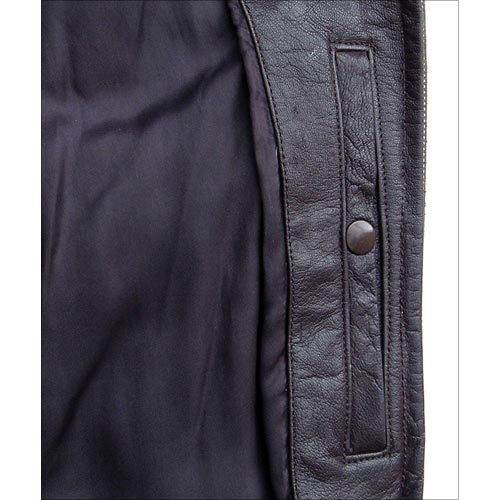 are rather large for a jacket of this size. The leather is a heavy goatskin and quite dark.